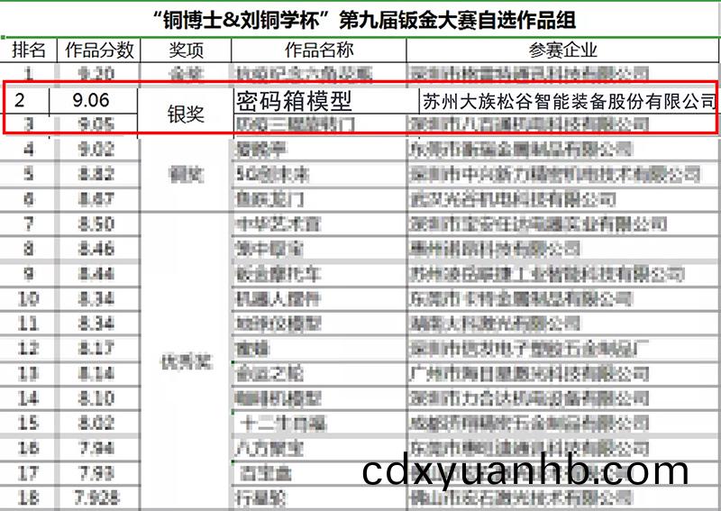 2020年11月11-15日,由深圳市鈑金加工行業(yè)協(xié)會主辦(ban)的“銅博士&劉銅學杯”第九屆鈑金(jin)工藝設計與(yu)制作大賽在深圳會(hui)展中(zhong)心進行評選和參展,經過國內外鈑金專業(yè)資深(shen)專家、學者和業(yè)界企業(yè)家們的評審,蘇(su)州松谷激光榮(rong)獲此次大(da)賽銀獎。